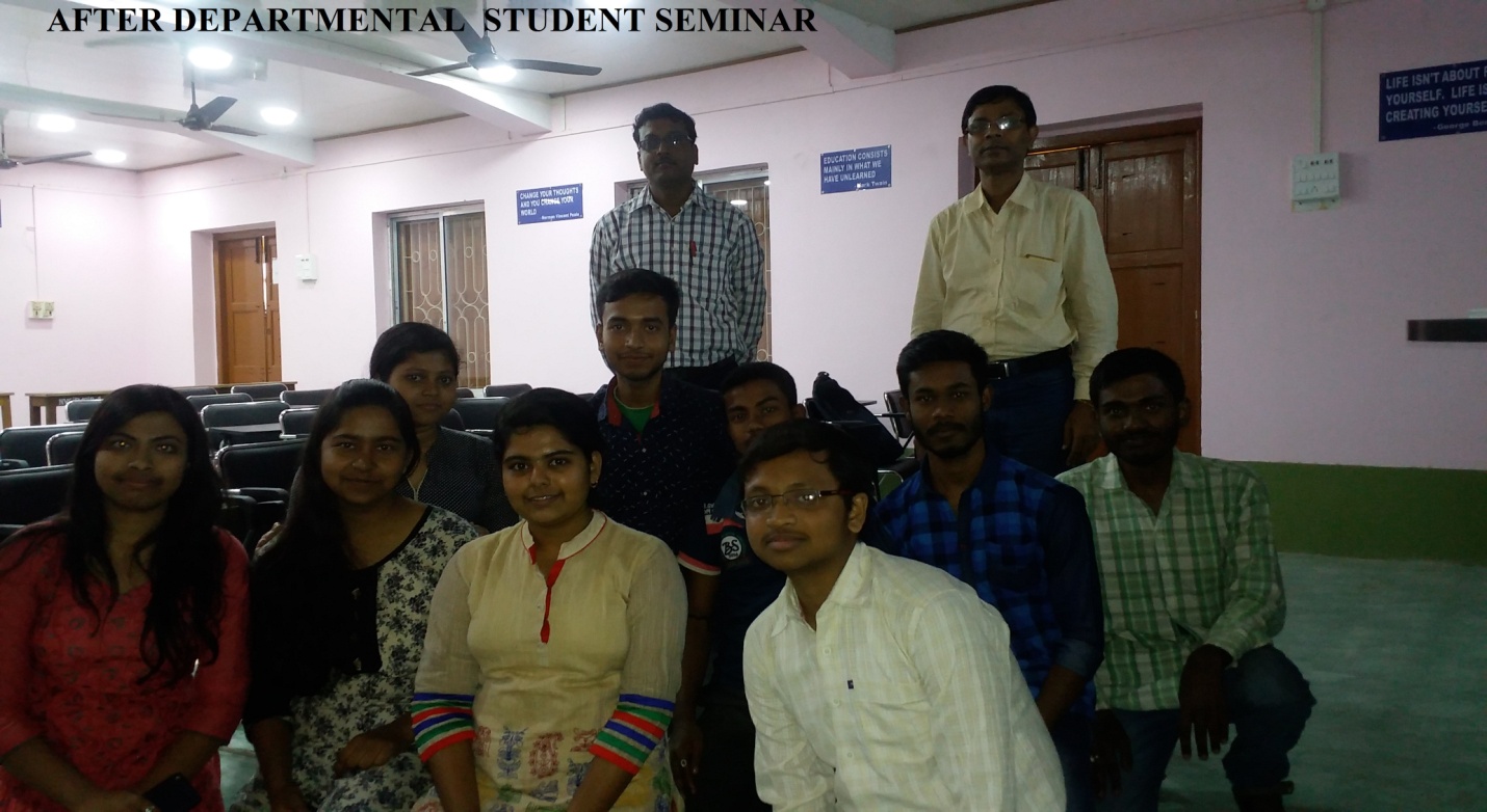 Besides teaching, our teachers are involving in research and administrative works. Our Head of the Department Prof. Debiprasad Acharya guided a Ph.D. scholar. All are requested to visit our Department for its betterment in the future world so that it can serve the society as good as present.